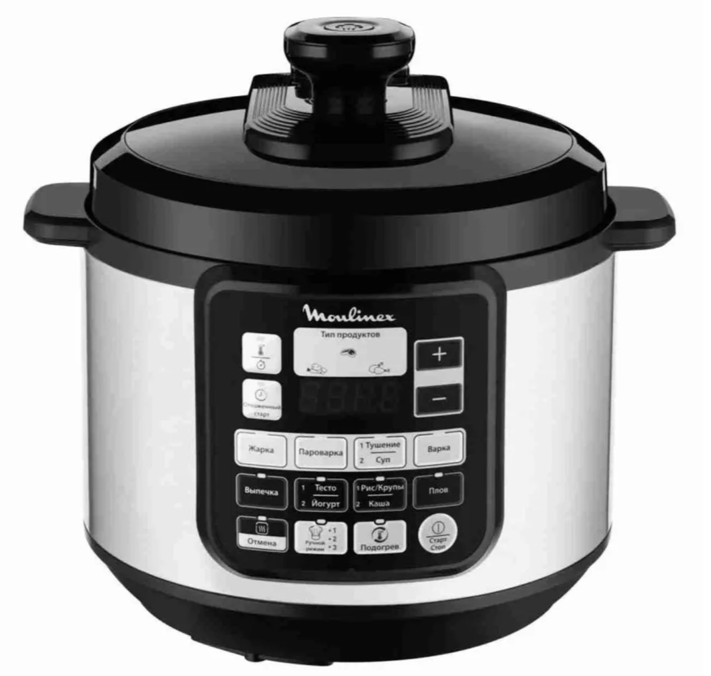 Главная практическая «фишка» Moulinex — ускорение готовки с помощью режима скороварки (функции повышения давления). Это позволит вам с легкостью готовить супы, мясо, бобовые и экономить время и силы на контроль готовности. При этом все функции мультиварки в приборе также сохраняются. Действительно, 2в1!