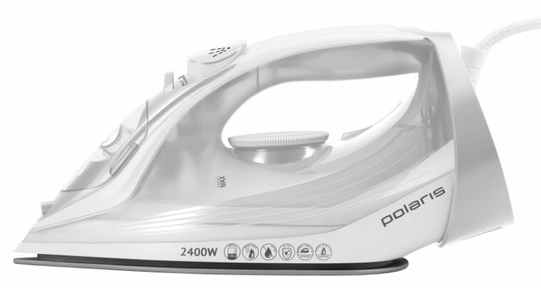 Мощность 2400 Вт, керамическая подошва PRO 5 Ceramic, паровой удар 165 г/мин (по некоторым данным до 175 г/мин). Постоянная подача пара 50 г/мин, объем 260 мл. Провод 3 метра, редкость для недорогих моделей, удобно, если розетка далеко или гладильная доска стоит в центре комнаты. Шнур с шарниром на 360°, не перекручивается и не ложится под руку.