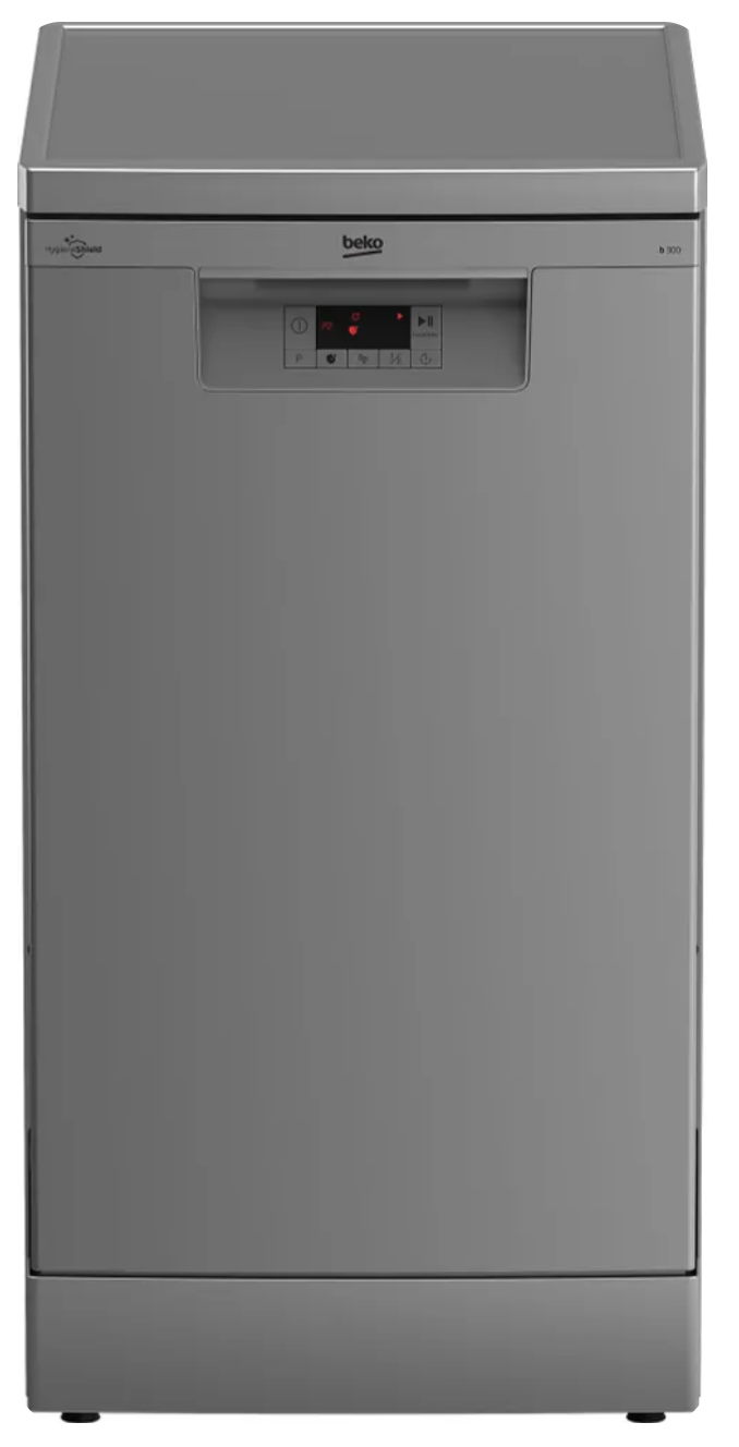 Узкая модель шириной 45 см для небольших кухонь. Вмещает 10 комплектов посуды: хватит для семьи из двух-трех человек. Пять программ мойки включают интенсивный цикл с высокой температурой, для сковородок с засохшими остатками. Верхняя корзина регулируется по высоте, так что высокие бокалы помещаются без проблем.