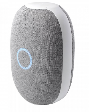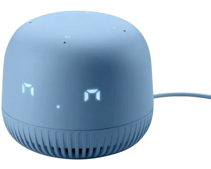 Компактная цилиндрическая колонка для кухни, спальни или рабочего стола. Корпус из пластика и ткани, сверху — сенсорные кнопки. На корпусе колонки есть физическая кнопка отключения микрофона. Особенность этой модели — монохромный LED-дисплей.