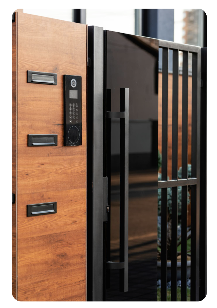Умный замок — электронная альтернатива обычному механическому. Открывается не ключом, а с помощью смартфона, отпечатка пальца, кода или NFC-карты. Внутри стоит электронный модуль: он получает сигнал от вашего гаджета через Bluetooth или Wi-Fi, обрабатывает и управляет ригельным засовом. Замочная скважина часто отсутствует, поэтому злоумышленникам труднее подобраться к механизму.